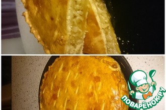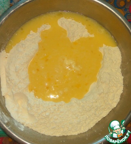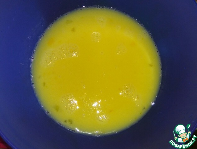 В середение делаем углубление и наливаем яичную смесь. Перемешиваем. -