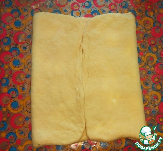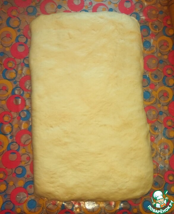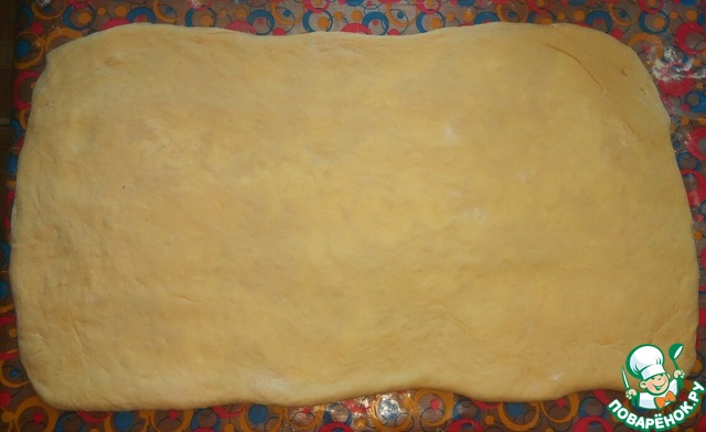 Присыпать с двух сторон мукой. Раскатываем снова в прямоугольник 50*30 см.