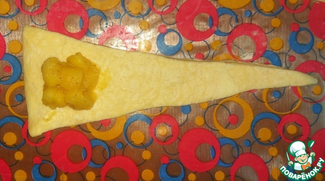 Тесто раскатать в прямоугольник толщиной 0,5 см.