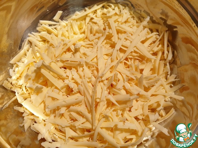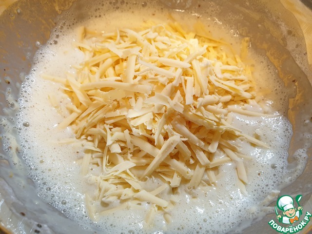 Залейте молочно-яичной смесью и посыпьте оставшимся сыром.