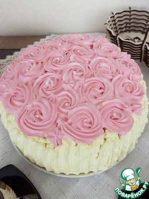 А верх украсила розочками. Можно украсить по своему вкусу и желанию! Готовый торт оставить для пропитки на несколько часов, но лучше конечно на ночь, что я и сделала.