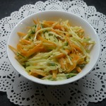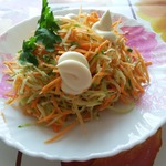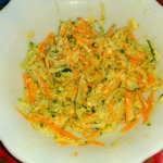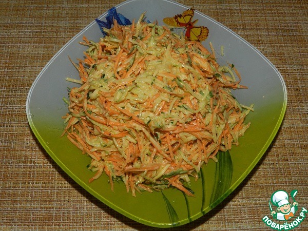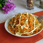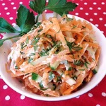 Немного с теркой для корейской моркови прогадала, слишком мелкая она у меня. Получилось не так красиво. Но на вкусе это не отразилось.