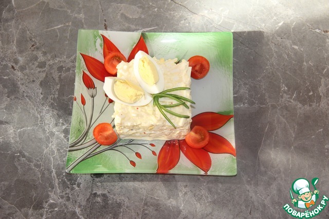 При желании украсить оставшейся половинкой яйца и зеленью.