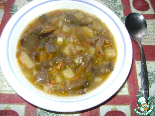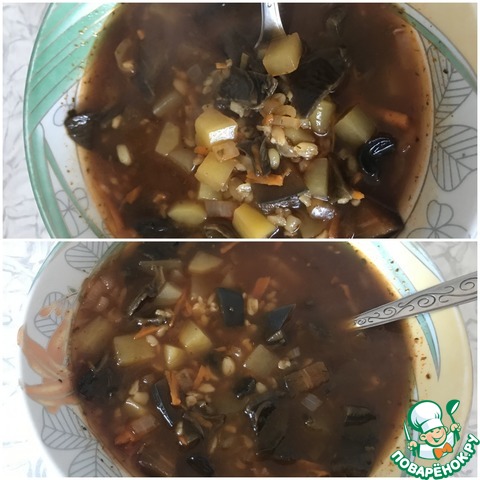 Рецепт «Грибной суп с перловкой и баклажанами»: