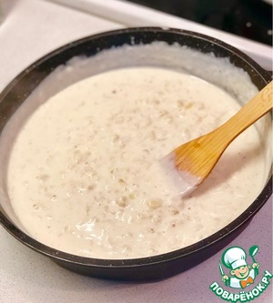Увеличить огонь до среднего, влить сливки. Готовить 5 мин., постоянно помешивая. Посолить, поперчить, приправить мускатным орехом. -