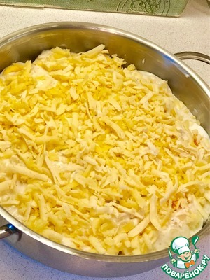 Яйца залейте соусом, посыпьте сыром.