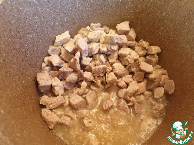 Свинину порезать некрупным кубиком. У меня был кусочек вырезки и карбонад. Вы можете взять любую часть без кости.