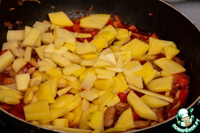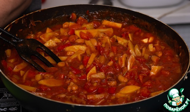 Любители фасоли или гороха добавляют всё в ту же сковородку их готовыми именно сейчас. -