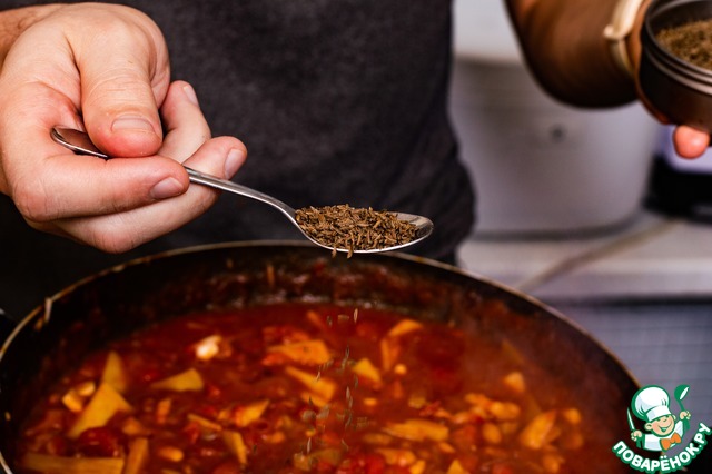 - Тмин (Крайне важный компонент - чайная ложка тмина. Одна-две. Почувствовать именно что в супе есть тмин достаточно сложно - его аромат и вкус слишком сливается с остальными ингредиентами, и никак не выбивается, так что даже если не любите тмин сам по себе - добавляйте и не сомневайтесь. Общий аромат и вкус супа от тмина улучшается очень ощутимо.) — 2 ч. л.