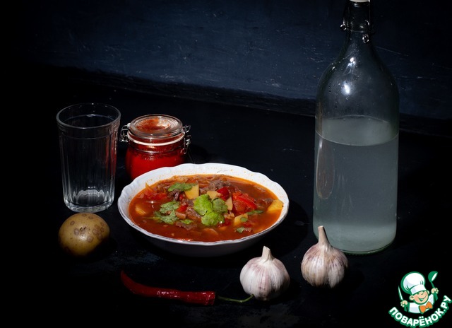 В отличие от многих других рецептов, которые мы сильно перерабатывали под политику "правильного" питания, венгерский суп гуляш изначально прекрасно подходит для кухни ЗОЖника, если в него не полениться добавить достаточное количество качественного мяса. Кроме того, данный рецепт подходит и для тех, кому острое нежелательно, и для тех кому желательно - достаточно приготовить соус, легко находящийся на поварёнке по словам "Эрош Пишта".