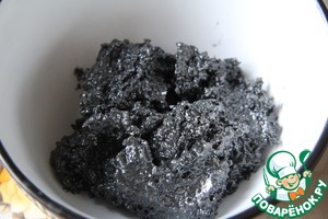Немного (2 - 3 ложки) теста смешать с кунжутной пастой, чтобы она стала более жидкой.