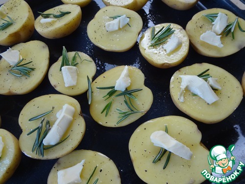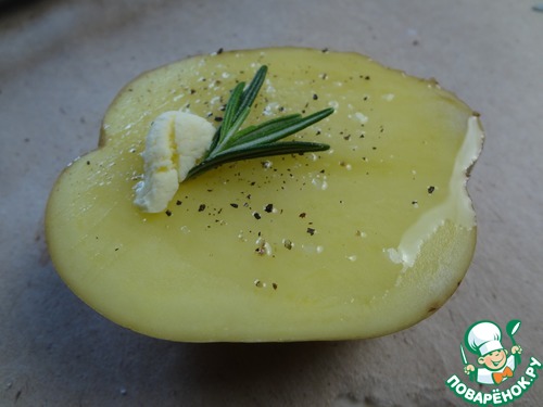 Смазываем картошку маслом - соль, перец, веточка розмарина