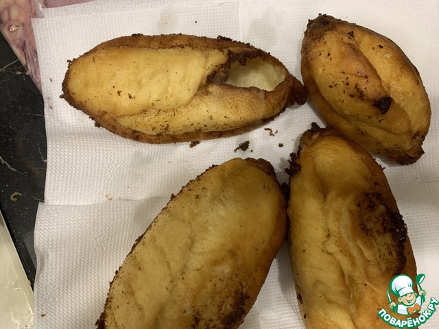 Обжариваем пирожки в большом количестве масла, температура огня должна быть между средней и высокой. Выкладываем пирожки на бумажное полотенце чтобы избавится от лишнего масла.