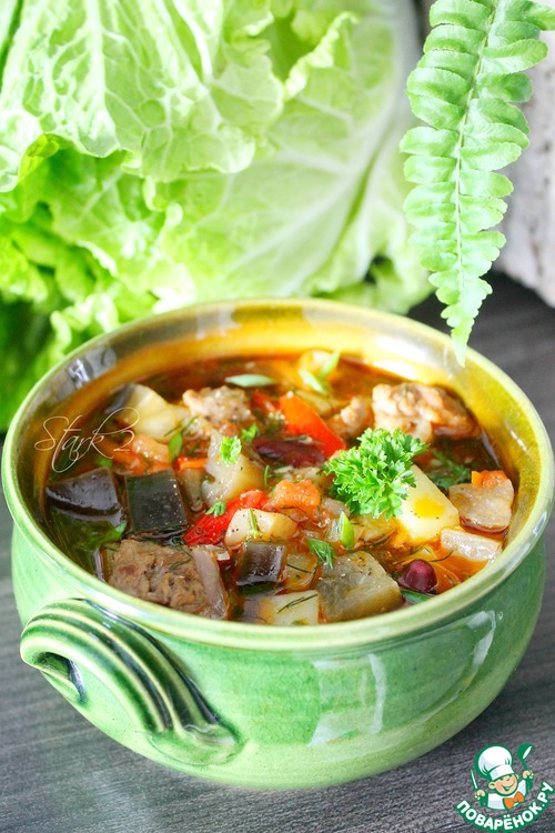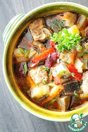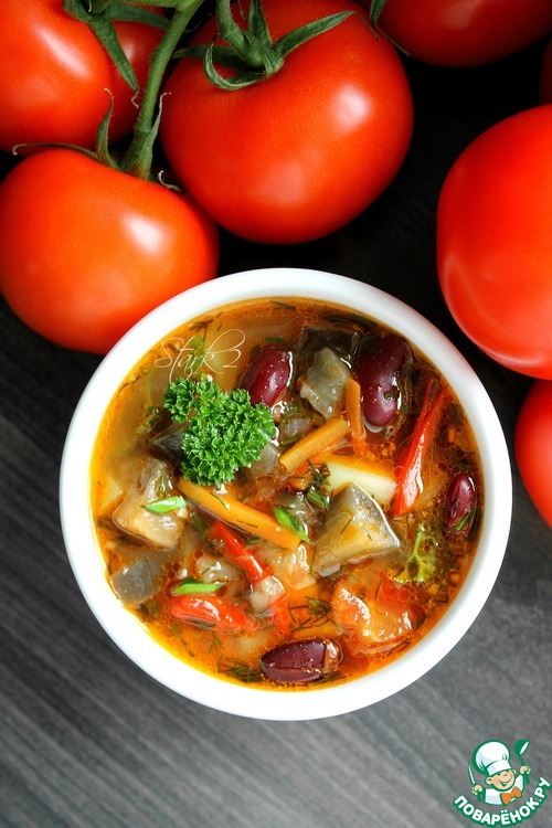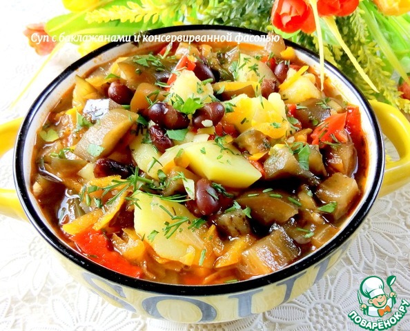 Рецепт «Суп с баклажанами и консервированной фасолью»: