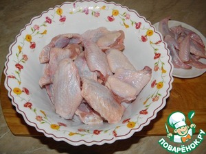 Крылышки разрезать по фалангам на 3 части ( самые маленькие кончики, как правило, шли на бульон) остальные в дело