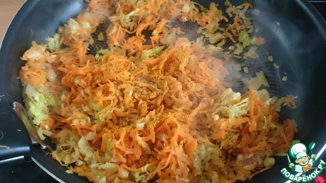 Добавляем специи (карри, кориандр), перемешиваем и снимаем с плиты.