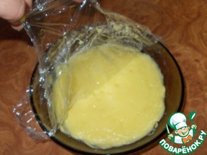 Постоянно помешивая доводим до загустения. По времени это займет, после закипания, буквально пару минут... Не больше! Оставляем остывать. Я для остывания перекладываю массу в тарелку и накрываю в контакт пищевой пленкой... Можно не перекладывать, а прям в кастрюльке накрыть пленкой. Некоторые поварята не накрывают вообще, а ставят кастрюльку с заварной основой в ледяную воду и помешивают до остывания. Сделайте, как Вам удобнее!