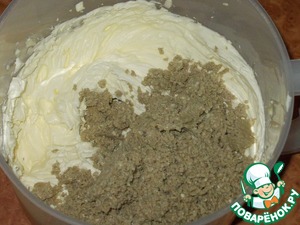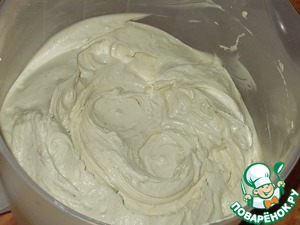 На низких оборотах миксера вмешиваем халву в крем. Перед сборкой торта крем можно охладить, но можно и сразу приступать к сборке.