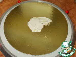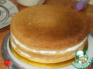 В этот раз у меня не было времени давать вызревать бисквиту и охлаждать крем... Поэтому я к сборке приступила сразу же! Не знаю стоит ли напоминать, что для фиксации торта, на подложку надо нанести ложку крема. Вдруг Вы этого не знали... возьмите на заметку это правило!