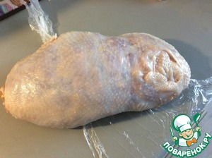 С птицы (в этот раз 1700г ) аккуратно снимаем кожу, вынимаем косточки.