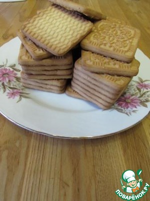 Подготовить печенье, можно брать шоколадное песочное без наполнителей. У меня обычное песочное печенье.