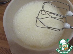 Желтки в просторной посуде смешать с сахаром и ванильным сахаром. Если масса густая, добавить 2 ст. ложки молока. -