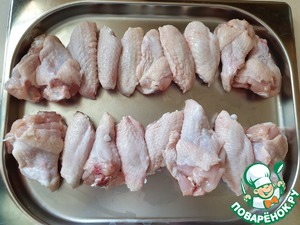 Крылья разрезать по суставу. Если есть крайние части - их отложить для варки бульона или выбросить.