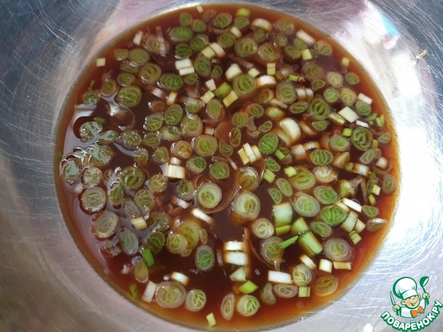 - Лук зеленый (6-8 перьев, в зависимости от толщины белой части) — 6 шт