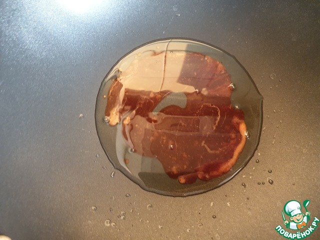Добавить сахар в вок, помешивая довести до полного растворения и карамелизации. -