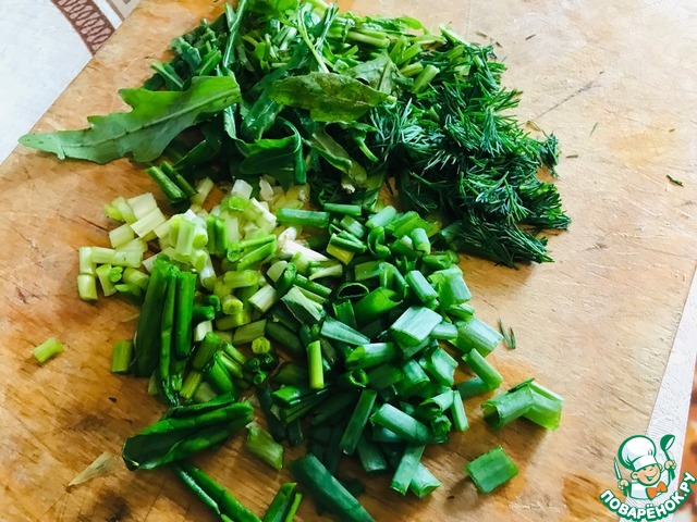 • Далее проще простого: Зелень крупно нарезать.