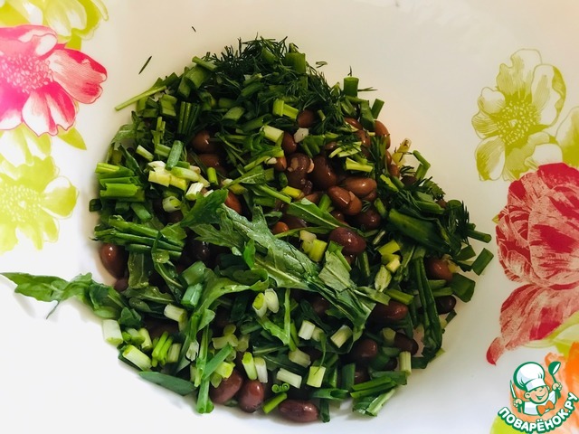 • Перемешать зелень с теплой фасолью.