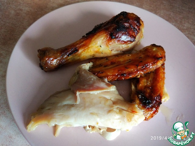 Если решите запекать на решетке, то не забудьте поставить под курицу противень с небольшим количеством водички.