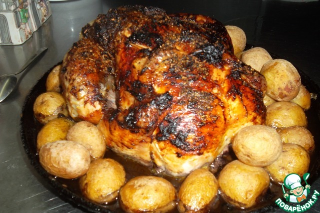 Соус наршараб, вот с ним как раз, заминка была. Хотелось настоящего, что то меня не привлекли изготовленные в липецкой или московской области азербайджанские соусы))) Нашла спец. магазин, там купила "родной" наршараб. Цена, конечно, заоблачная. Но прошептав себе, живём один раз, я решилась))) И не капельки не пожалела. Это стоило того! Волшебная, колоритная, необыкновенная птица!