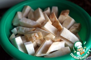 Сельдерей очистить, нарезать брусочками.