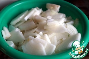 Лук порезать четвертькольцами.