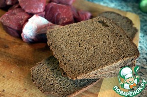 Поверх мяса уложить корки ржаного хлеба.