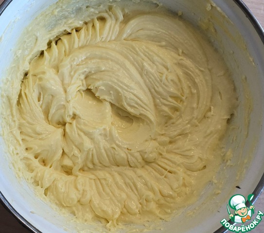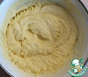 • В остывший до комнатной температуры крем добавляем мягкое масло и всё вместе взбиваем до пышности.