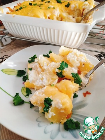 К великому множеству блюд из картофеля хочу добавить ещё одно. Из простых продуктов получается ароматный, нежный, сырный картофель, а его приготовления не займет много времени, особенно если отварить картофель заранее.