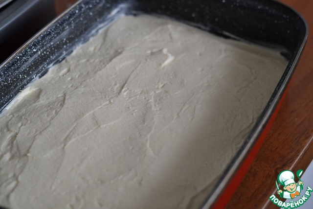 Вылить тесто в форму, разровнять лопаткой и выпекать в разогретой духовке при 150гр 30 минут, затем температуру увеличить на 180гр и допекать до готовности.