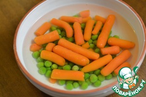 Замороженные овощи ( у меня морковь и горошек) залить кипятком на 5 минут.
