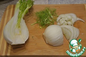 Половинку луковицы фенхеля нарезать тонкими ломтиками.