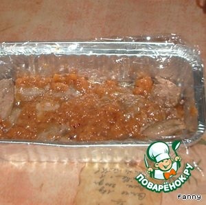 Уточняю: в оригинальном рецепте печень утиная, и хурма. У меня - гусиная, хурму не люблю, заменила на сливы крупные. Еще использовала бекон (в рецепте утиный жир). на котором поджаривала печень.