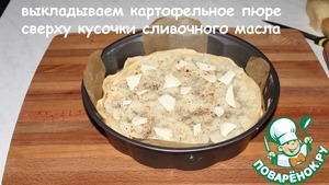 Выкладываем картофельное пюре, сверху кусочки сливочного масла.