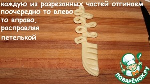 Каждую из разрезанных частей отгинаем поочередно то влево, то вправо, расправляя петелькой.