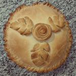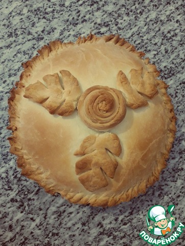 Украшаем пирог. Оставляем подойти 15-20 минут и смазываем желтком. Выпекаем при температуре 180 градусов 40-50 минут.