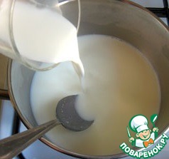 Для начала необходимо приготовить натуральный йогурт. Молоко нагреть до температуры не более 40-45С. Развести в теплом молоке закваску (или йогурт).