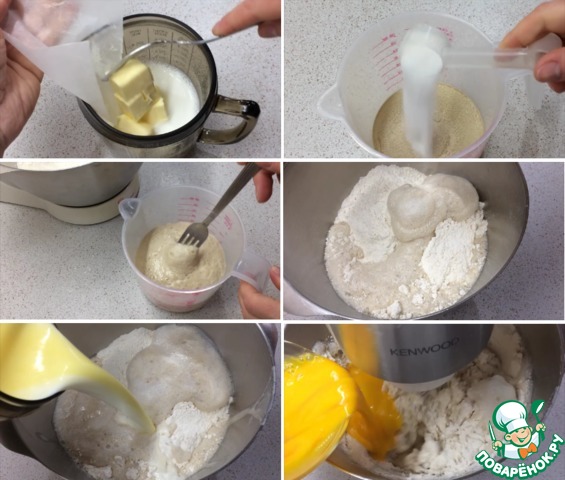 Перемешивая на низкой скорости миксера добавьте проснувшиеся дрожжи.