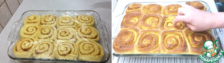И убираем снова на расстойку в теплое место накрыв пищевой пленкой -