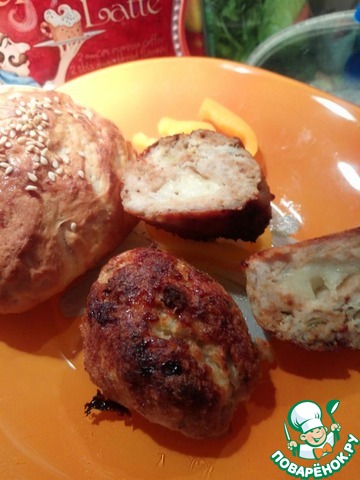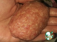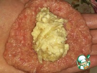 Из фарша сформировать колобки. Расплющить колобок в ладони, в середину положить 1 ст л начинки. |