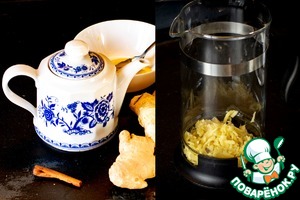 У кого имбирь тертый и есть френчпресс - соответственно, их и сочетаем. Тут имбирь будет работать чуть быстрее - нарезан-то потоньше. -